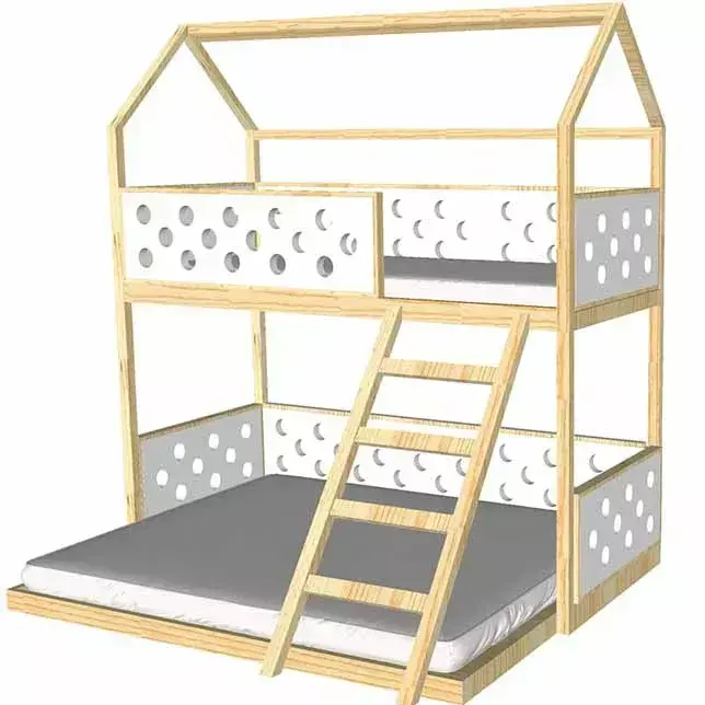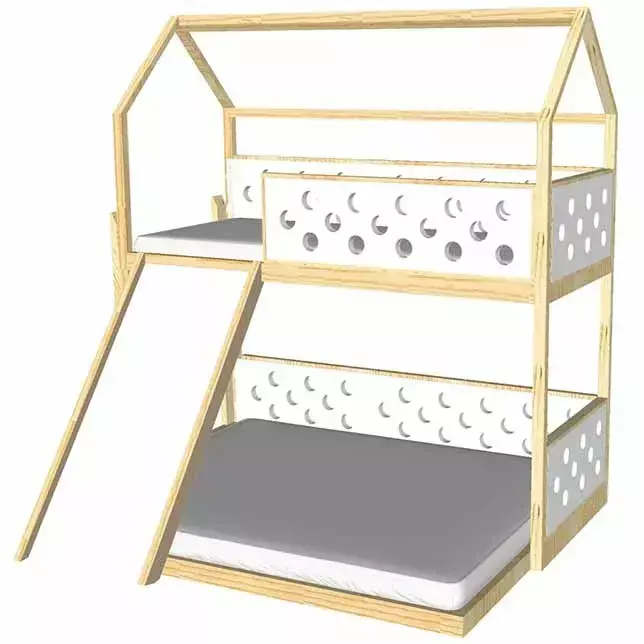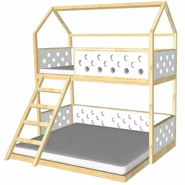 Beliche produzido em madeira maciça Pinus com grades revestidas em fórmica branca.