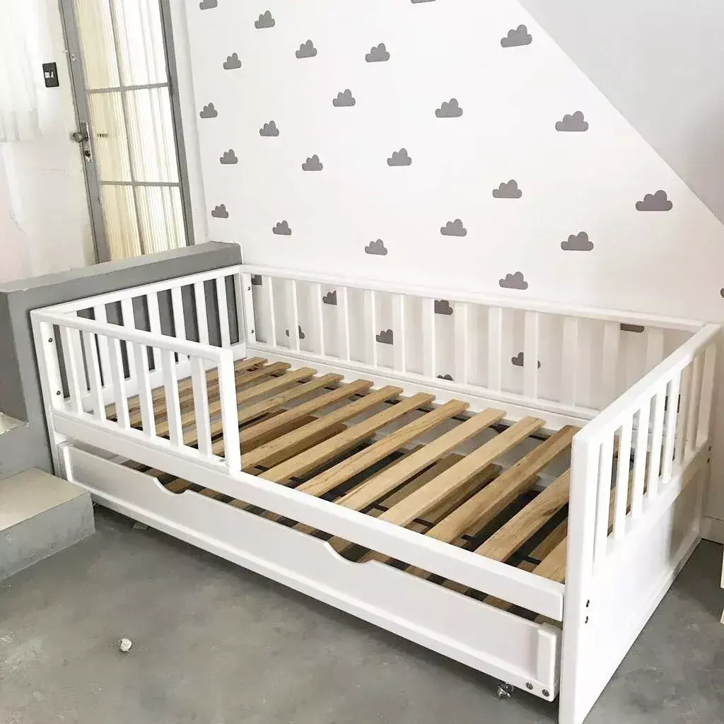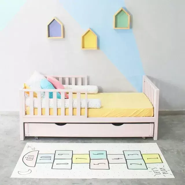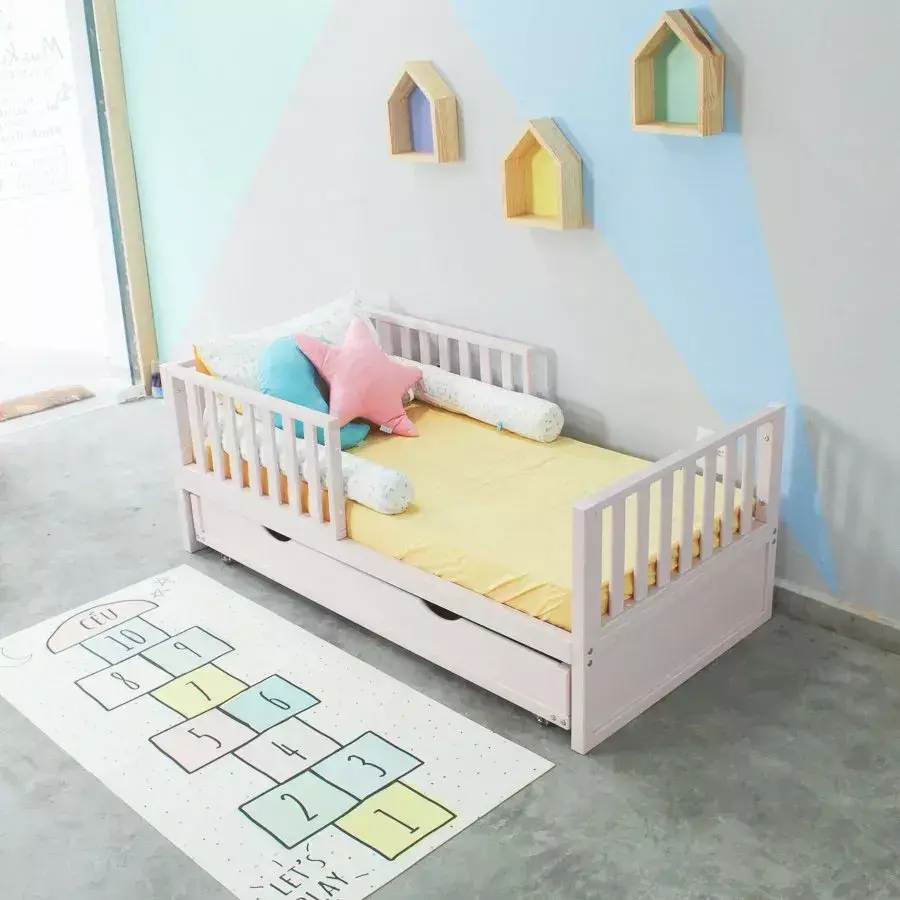 Cama com design lúdico pensada para estimular o desenvolvimento da criança. A altura do colchão é adequada para o fácil acesso para os pequenos, estimulando a independência.