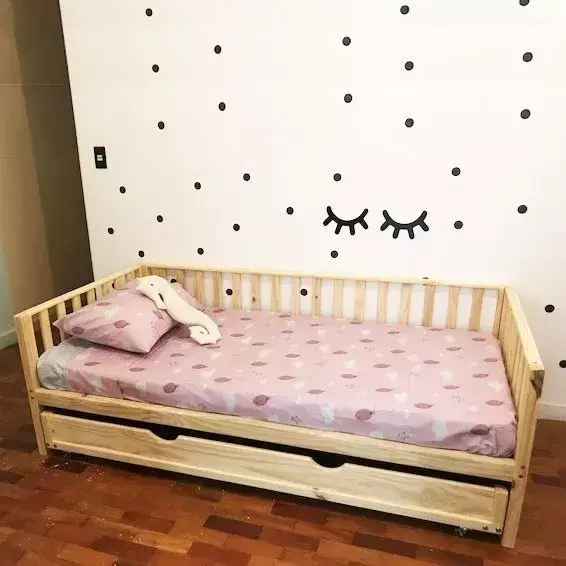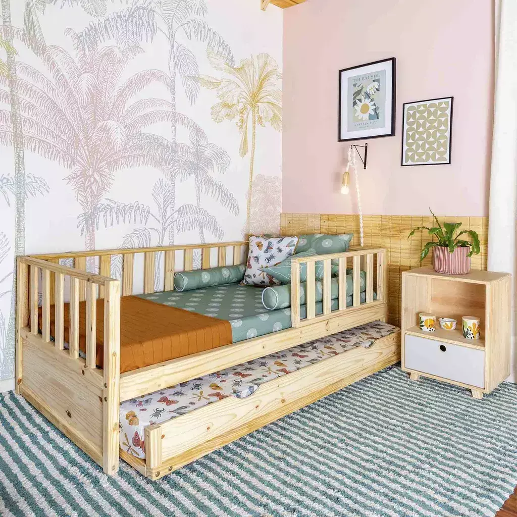 Cama com design lúdico pensada para estimular o desenvolvimento da criança. A altura do colchão é adequada para o fácil acesso para os pequenos, estimulando a independência.