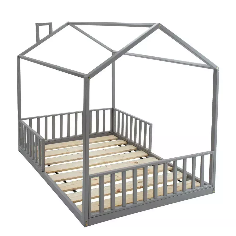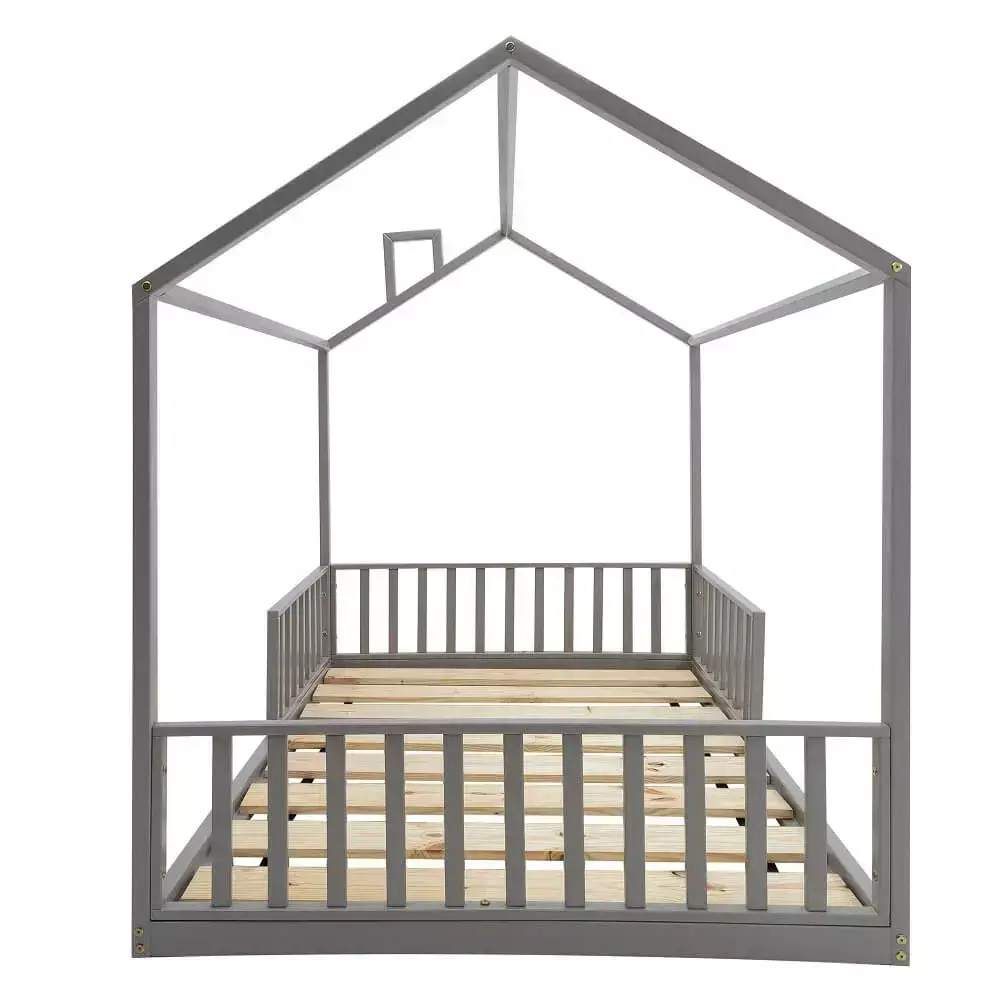 Cama montessori com design lúdico de casinha pensada para estimular o desenvolvimento da criança. A altura do colchão é adequada para o fácil acesso para os pequenos, estimulando a autonomia.