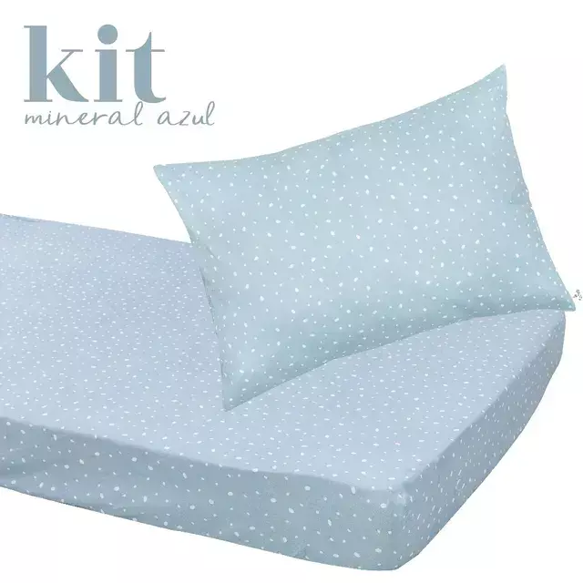 Kit Mineral Azul com Lençol de Elástico e Fronha 100% algodão