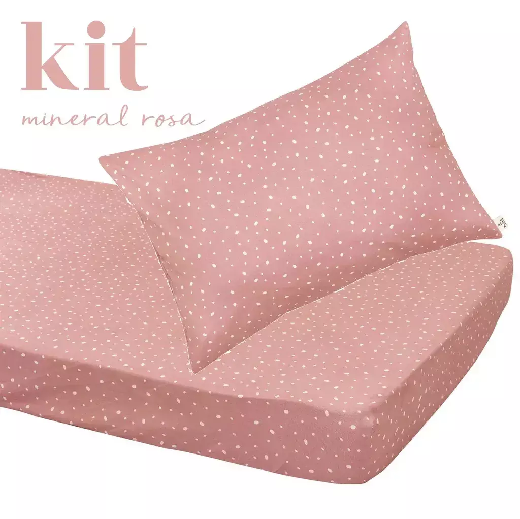 Kit Mineral Rosa com Lençol de Elástico e Fronha 100% algodão