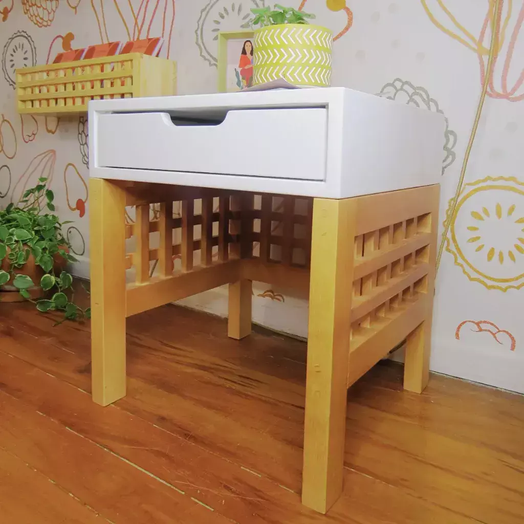 A Mesa de Cabeceira Infantil Muxarabi é a escolha perfeita para quem busca funcionalidade, charme e organização no quarto das crianças. Com estrutura em madeira Pinus com verniz e tampo em laca branca, a peça combina resistência, praticidade e design artesanal, valorizando cada detalhe do móvel.