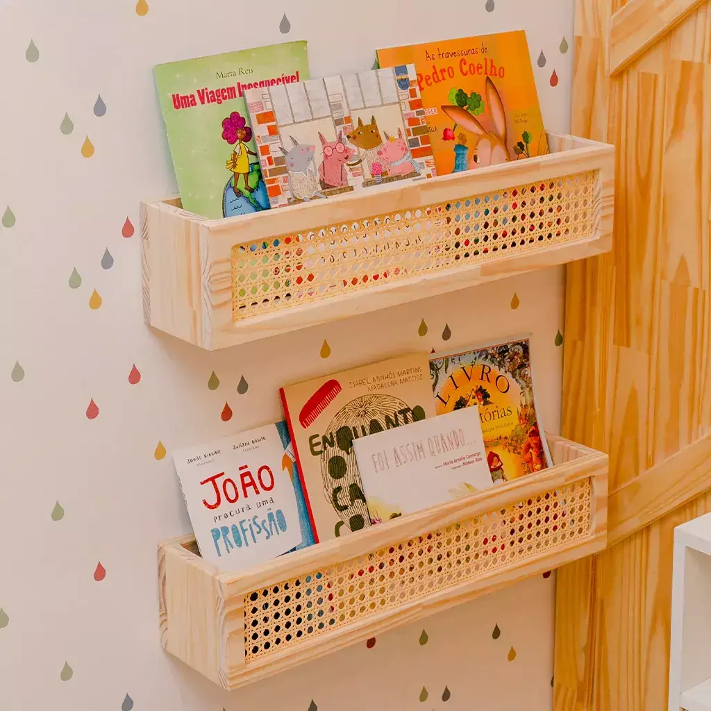 Com design delicado e toque artesanal, o Livreiro Lavanda é perfeito para deixar os livros sempre visíveis e ao alcance das crianças, incentivando o hábito da leitura com autonomia e encanto.